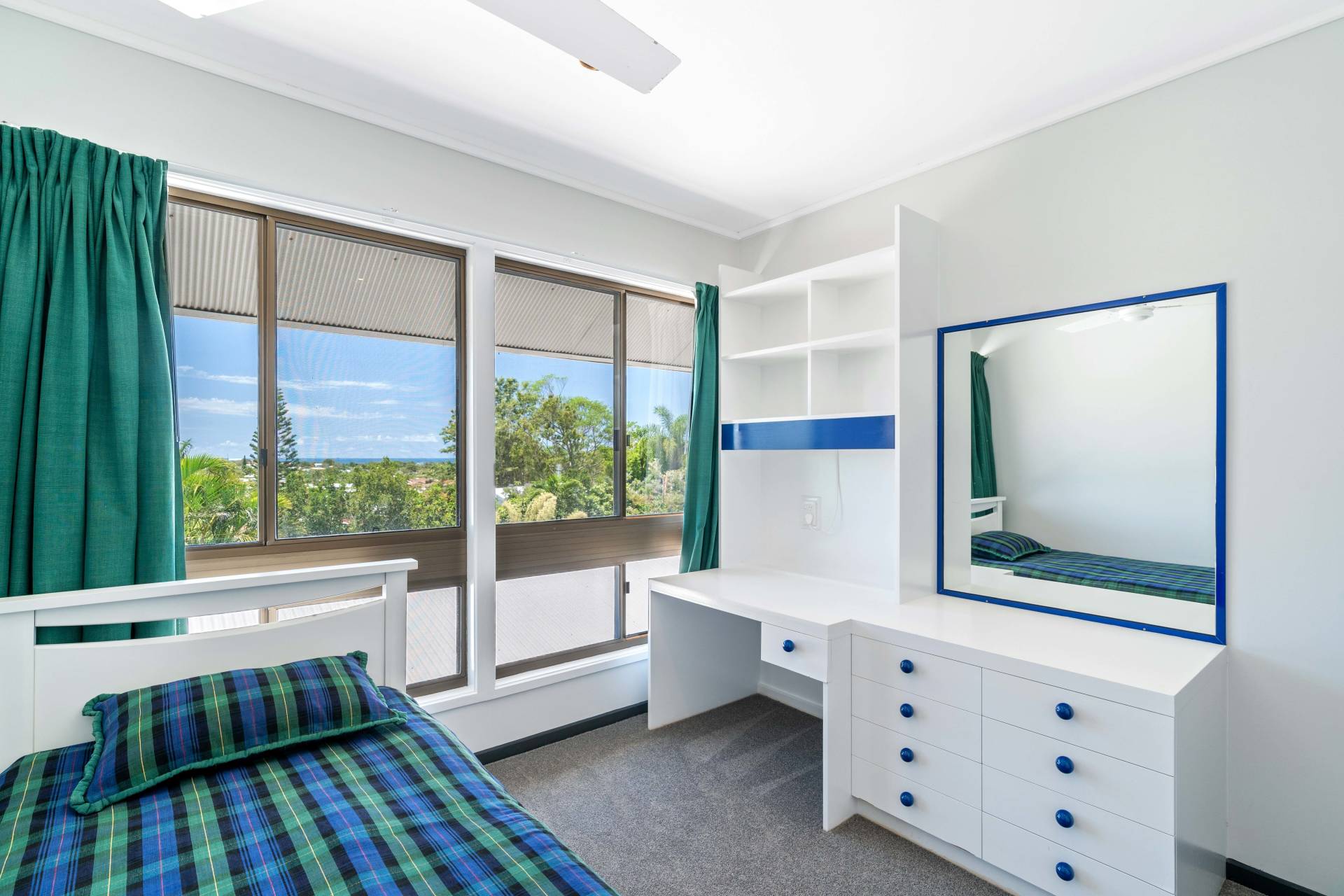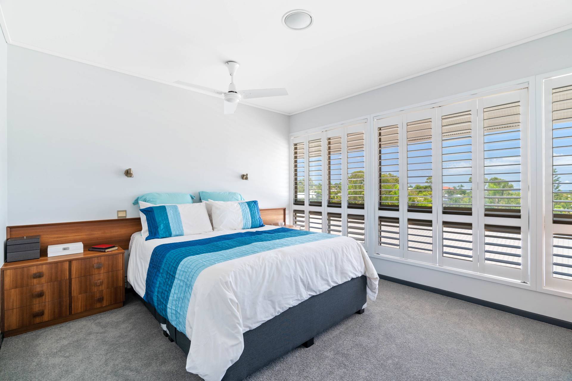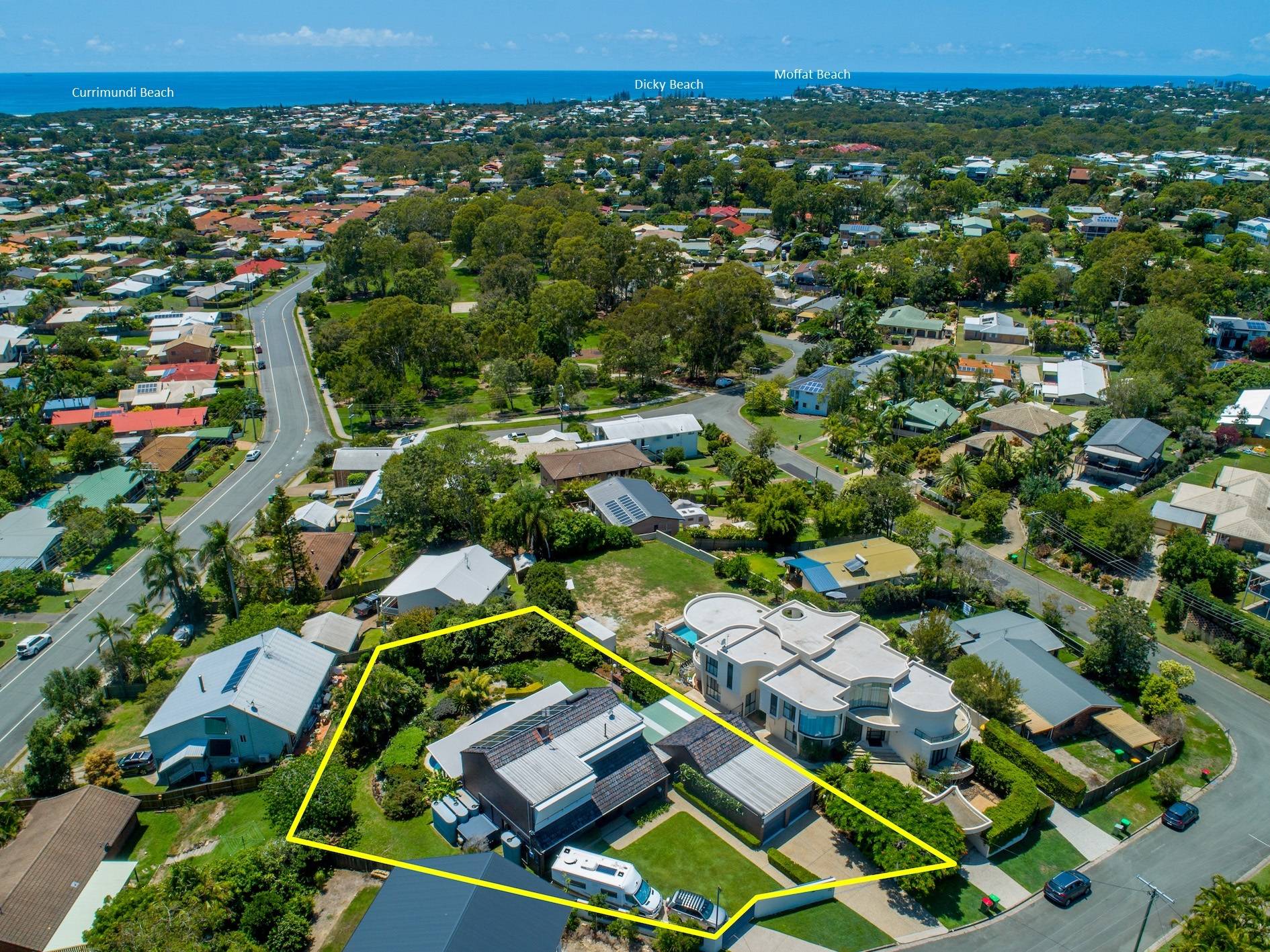 Set high in a quiet cul-de-sac amongst other quality homes, its elevation provides glimpses of nearby CurrimundiLake and Dicky Beach and attracts cooling coastal breezes and ample natural light.