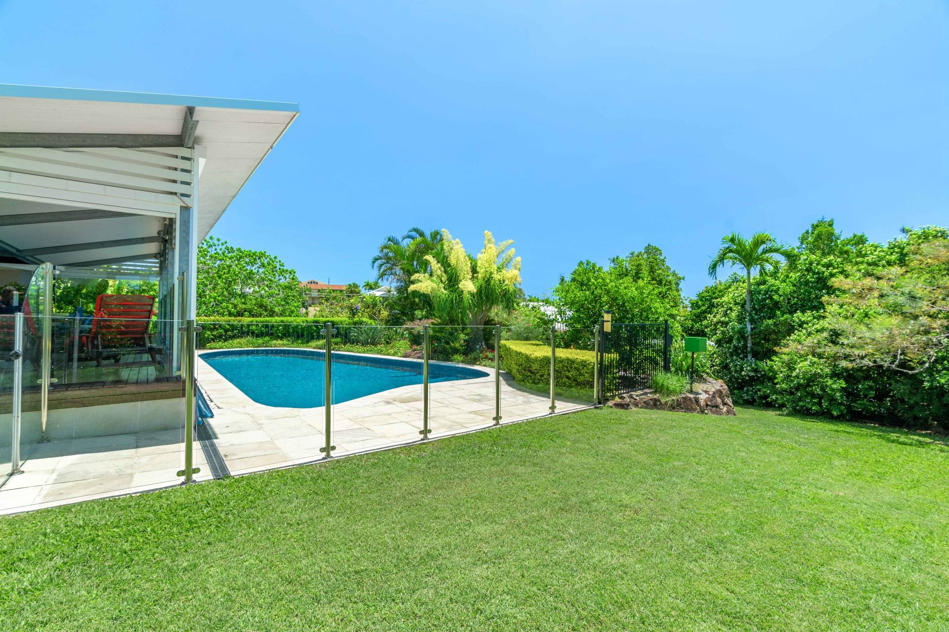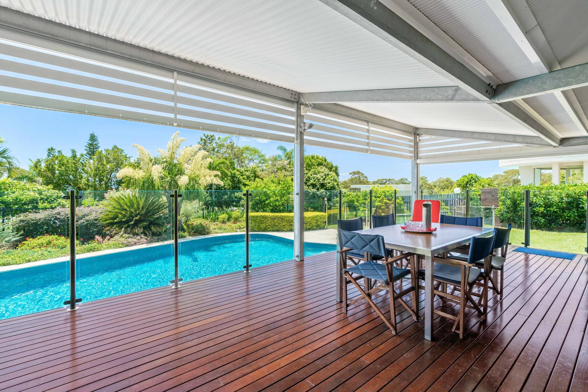 • Huge North East facing pool side deck with remote control blinds