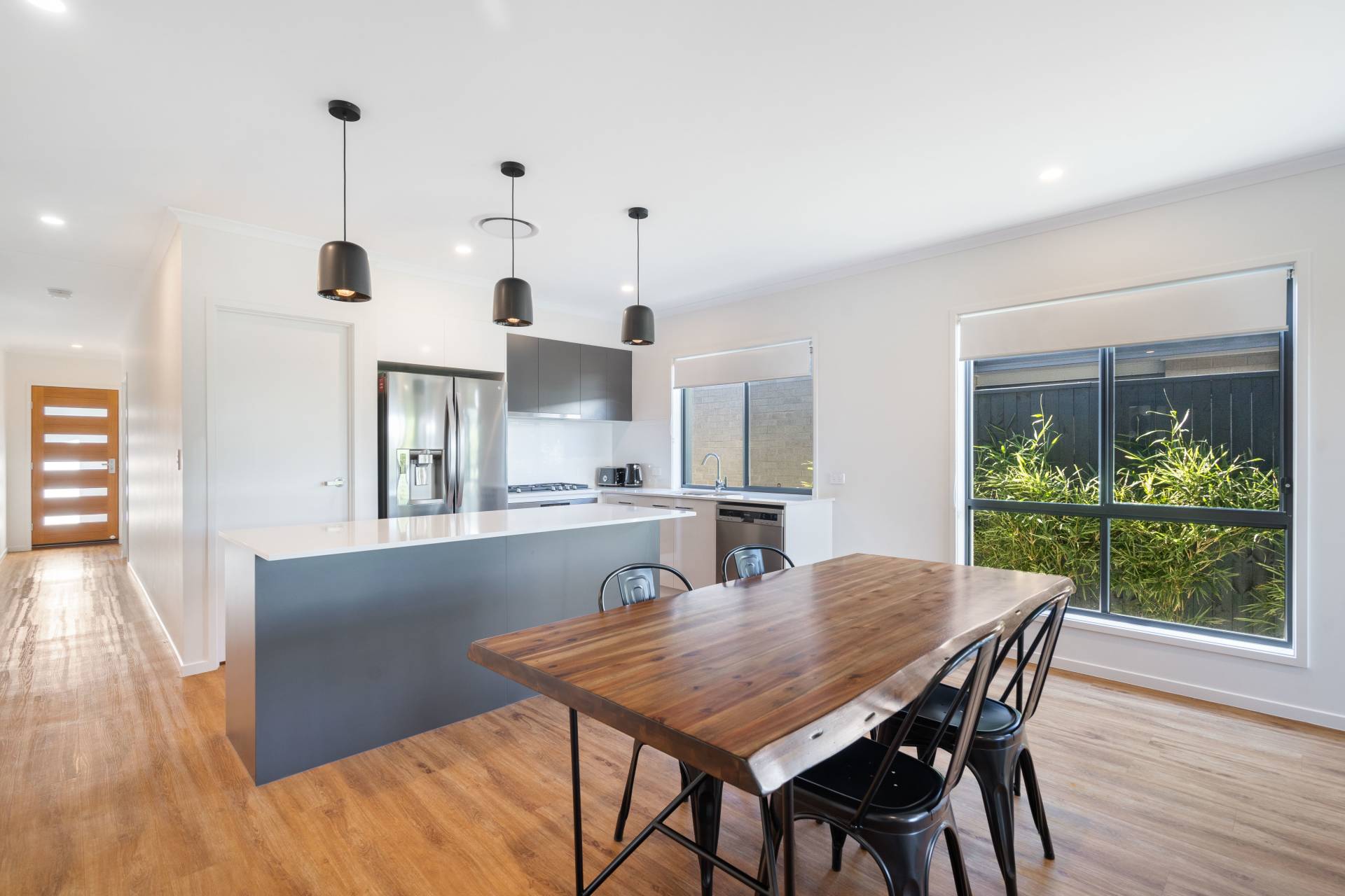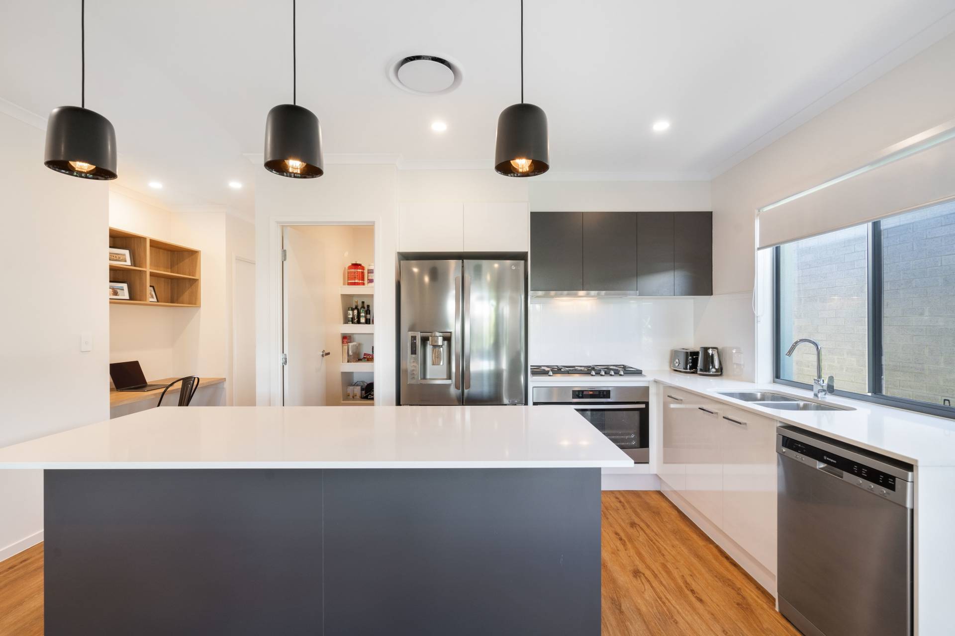 Located in a quiet Crescent with very little through traffic you’ll love the quiet and convenience of being just 10 minutes from schools shops and all the amenities. The stylish kitchen is very much at the heart of this home. Its island bench with soft close pot drawers and walk in pantry add practicality to style. Some of its additional features include 900mm Westinghouse appliances, gas cooktop and multi-function oven, large plumbed fridge space, stylish drop in sink and feature pendant lighting.