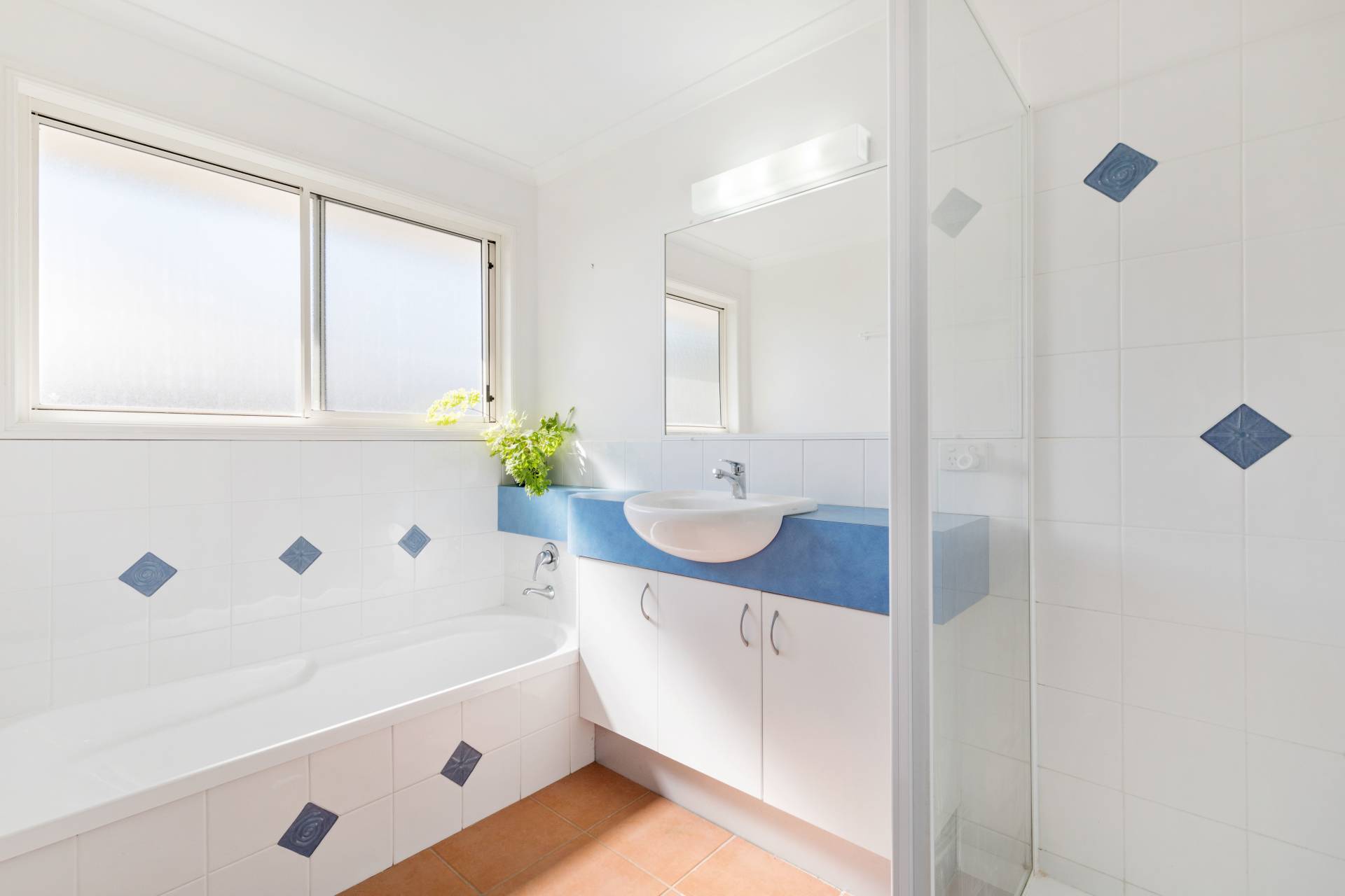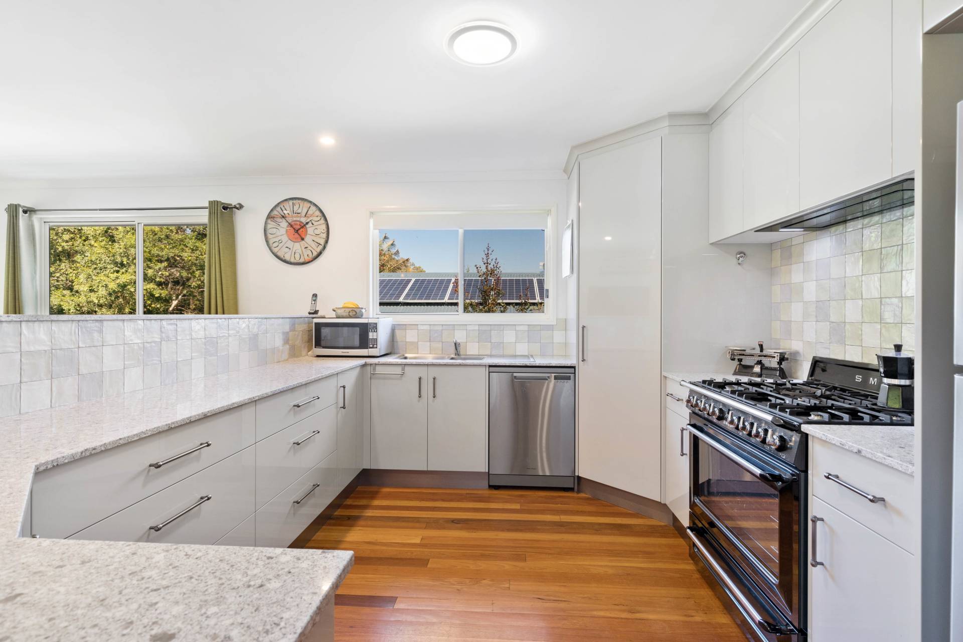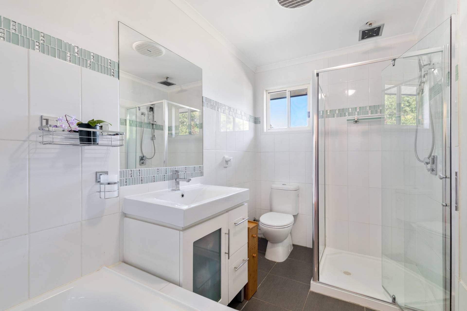 The large timber deck enjoys the natural calm and beauty of a pretty leafy backdrop which hosts a number of native bird species, also encouraged by thoughtful native plantings. An ideal place to relax with a book or chat over a barbecue with friends and family.