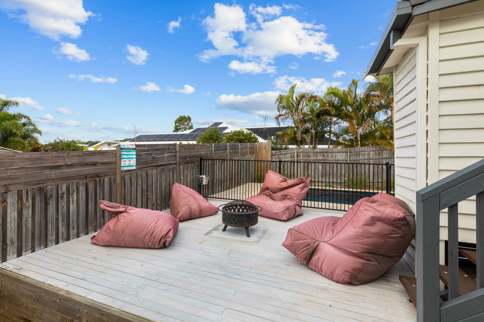 • Sunny entertaining deck with private back yard, in-ground pool