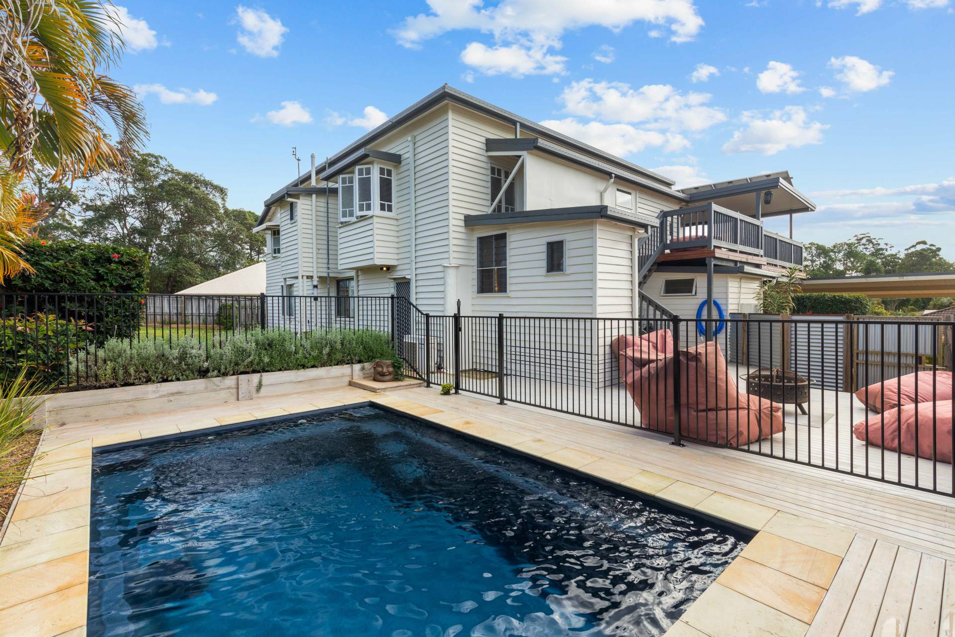 This beautiful home just oozes old school charm and offers so many lifestyle and entertaining options. Share sundowners with friends on one of the two north facing decks on the upper level of the home with beaut views and breezes. Or enjoy a chat around the fire pit on the lower more private and protected deck overlooking the salt water pool.