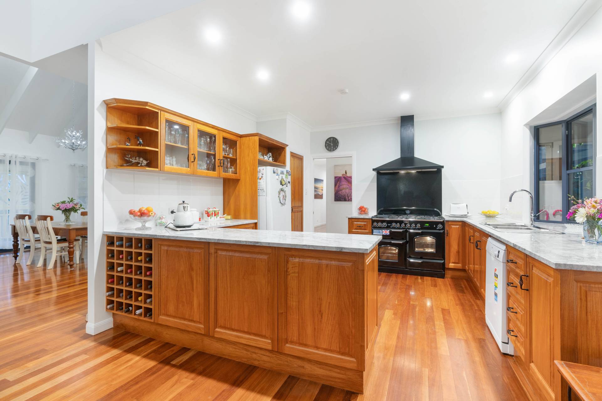 The well-executed floor plan of this home provides a lovely flow between the external and internal, formal and informal living areas. The central kitchen features New Guinea Rosewood cabinetry,quality granite benches and a spacious walk in pantry. The highlight for avid entertainers is a Falcon Classic Deluxe Dual - Fuel 110 Stove big enough to feed a crowd, while at the same time giving a nod to the timeless feel of a country kitchen. The nearby laundry is big enough to double as a butler's pantry including room for additional fridges or freezers.