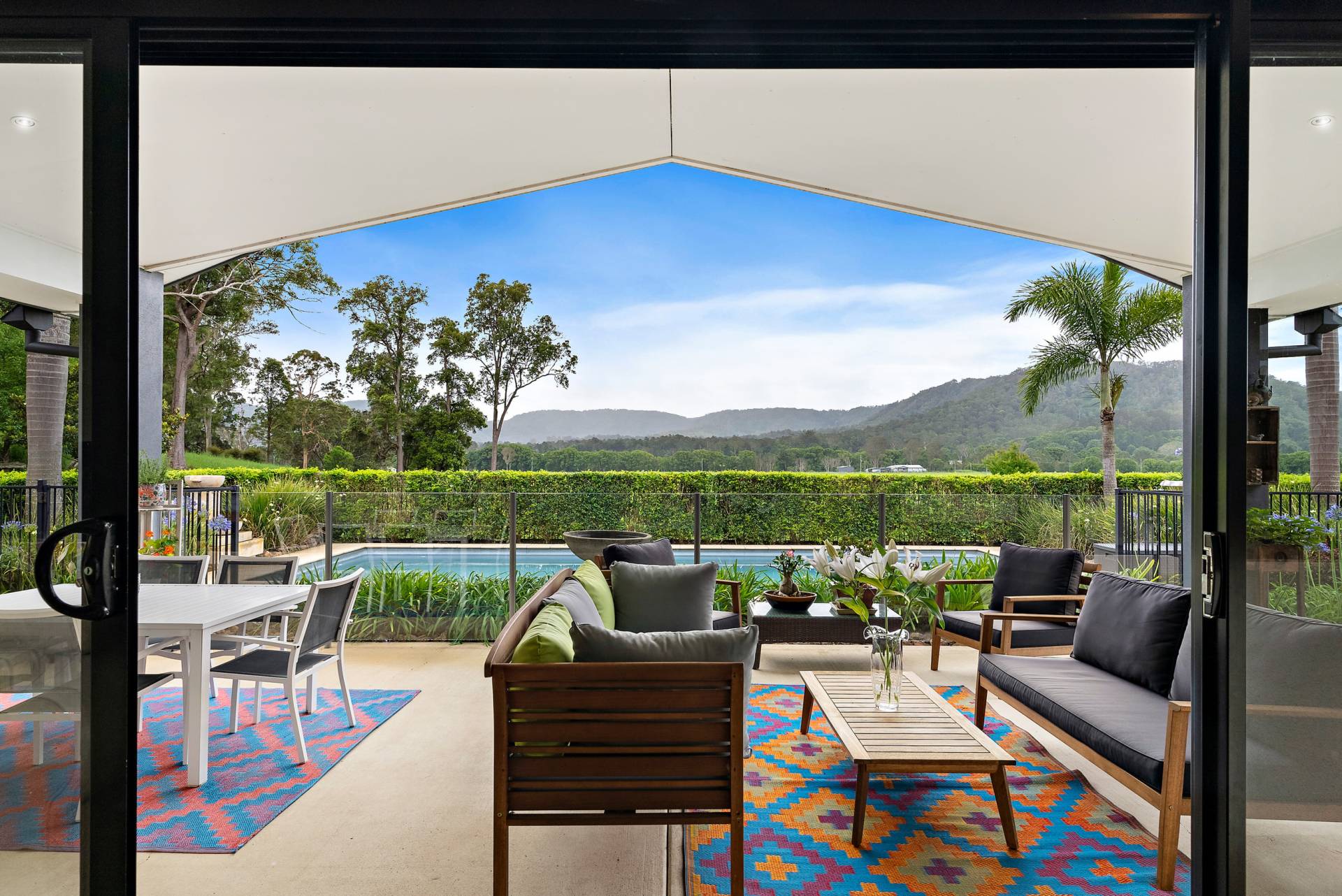 Ideal for entertaining the very well appointed chef's kitchen boasts ample bench, preparation and storage space, a 900mm gas cook top and fan forced oven, a broad breakfast bar with waterfall stone benches, a large fridge space and separate coffee nook. Wide stacker doors open the entire living area to the north facing gabled poolside alfresco. The beautiful master bedroom suite with its direct patio and pool side access also features a spectacular outlook, not the least of which is a birds eye view of the sun rising above the mountains. The well proportioned double ensuite will entice with its deep over sized spa bath, perfect for a good soak to relax after a day of riding or gardening.