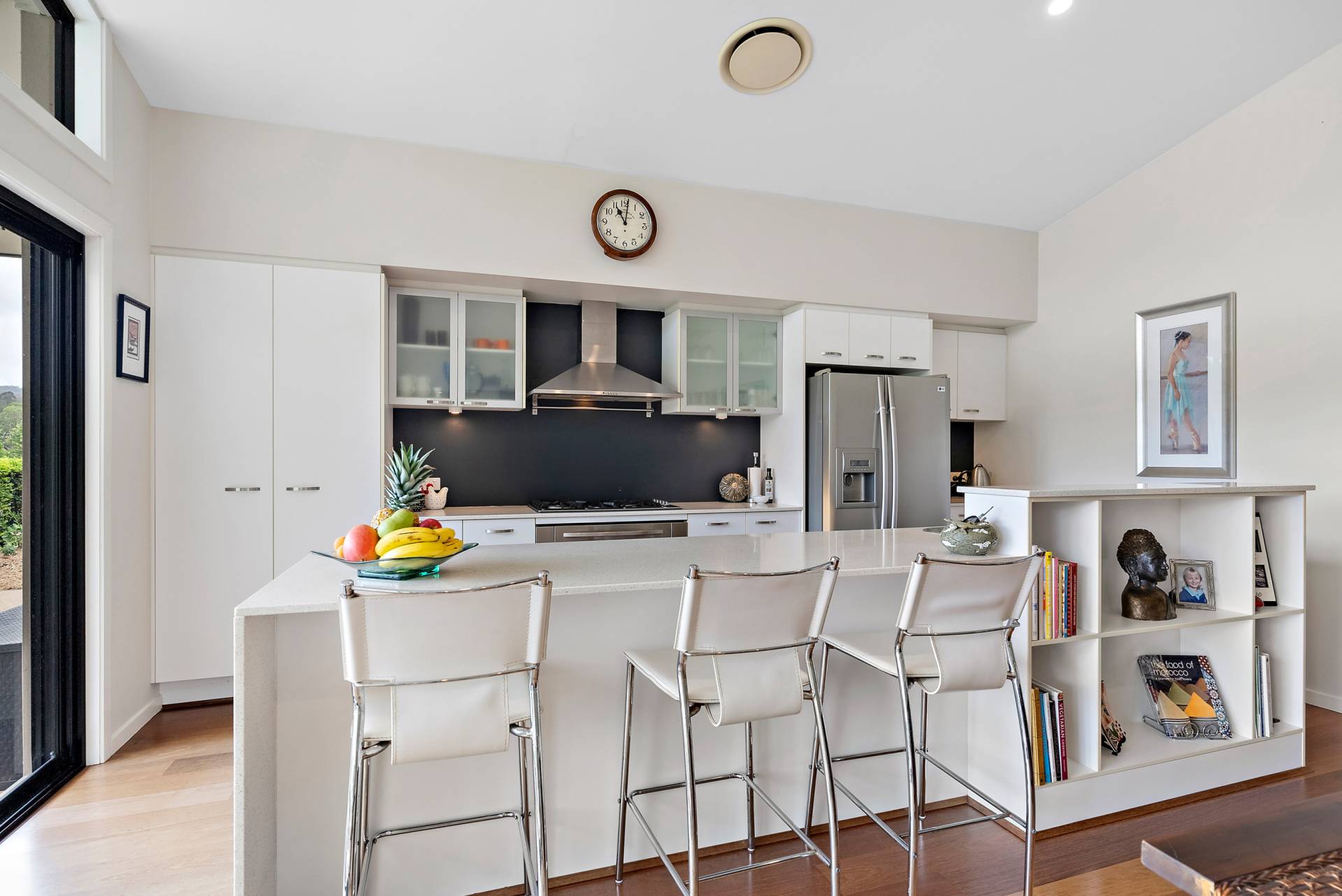 The executive style home makes a bold statement, set amongst lovingly cared for formal and informal gardens. The wide double door entry and impressive foyer reveal a splash of the spectacular; drawing the eye directly through the house to the hedge lined pool and the mountains beyond. The carefully crafted floor plan brings pracitical separation between zones, with parents at one end and guests and family at the opposite end with the shared open plan living area ensuring space to spread out when desired.