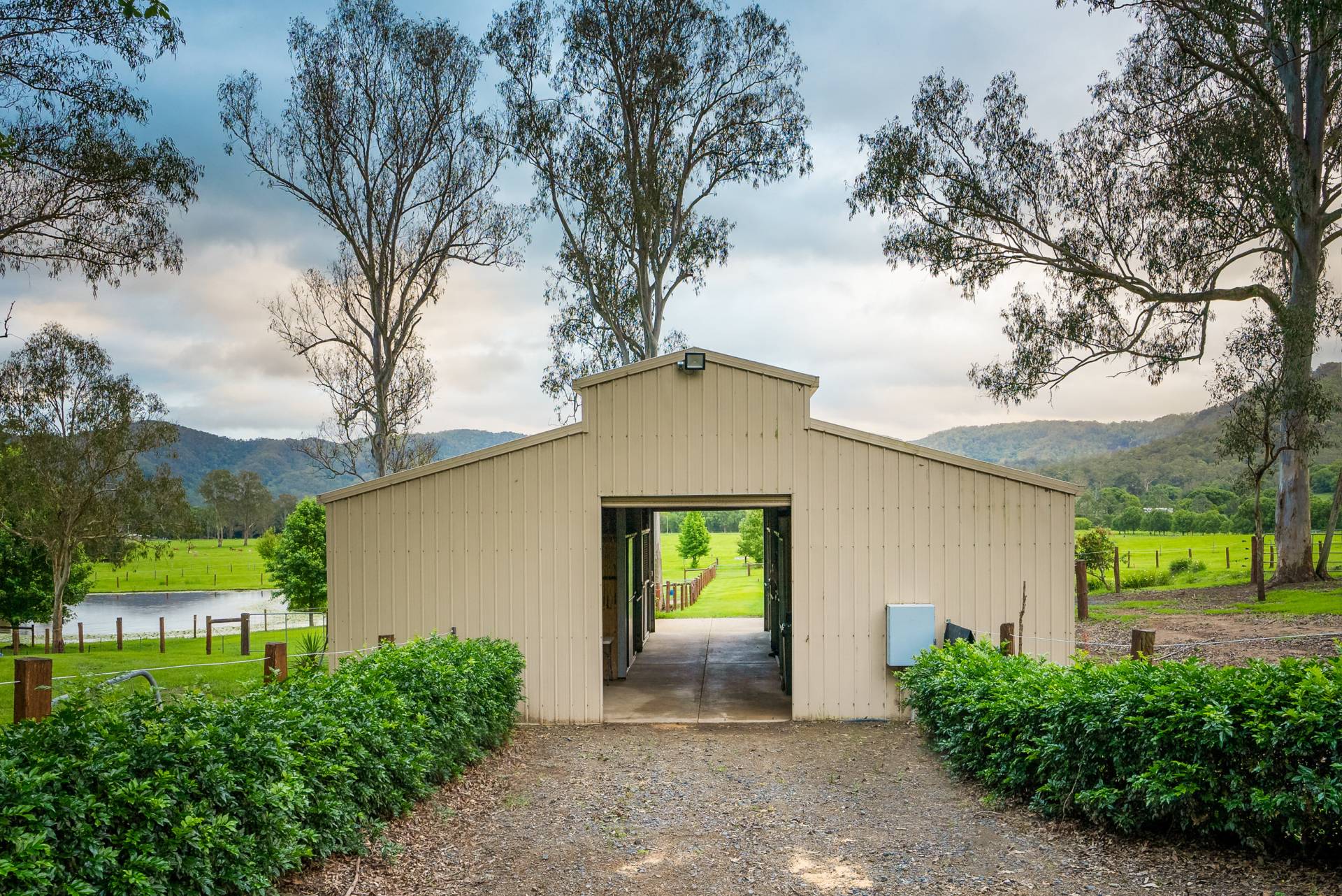 The well planned network of horse paddocks are equipped with shelters, some electric fences, easy access to water and an internal corridor leading directly to the fully equipped stables, the nearby round yard and open arena area. The American barn style stables have both power and rainwater with its own pump, 4 stables, 2 wash bays, a vet stall, room for feed and tack as well as laundry and tea making facilities and high clearance drive through convenience for easy loading and unloading.  All internal roads are quality roadbase for all weather access. For the riders there are a wide range of nearby trails of varying degrees of riding proficiency, many of the National Parks trails have provision for parking for floats etc.