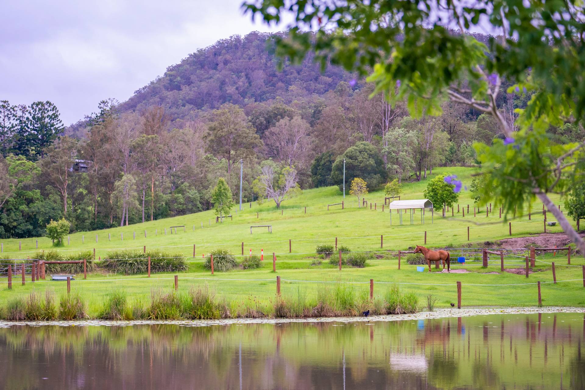 Located roughly10 minutes from the Hinterland townships of Mapleton and Kenilworth, or 20 minutes from Nambour “Obi View” offers 38 picturesquely undulating acres. Cradled by the surrounding hills of 4 National Parks and the Blackall Ranges, the northerly aspect of the home provides a stunning rural outlook across a valley of lush green paddocks, featuring a glimpse of Mapleton Falls.