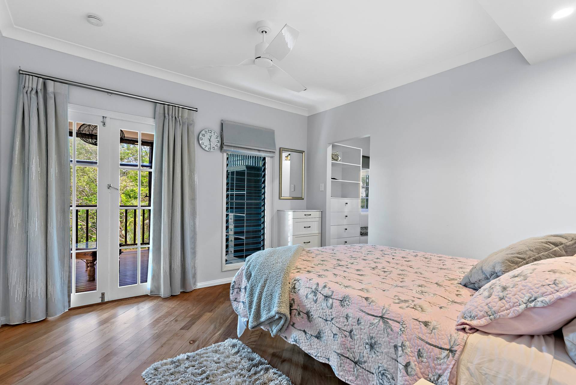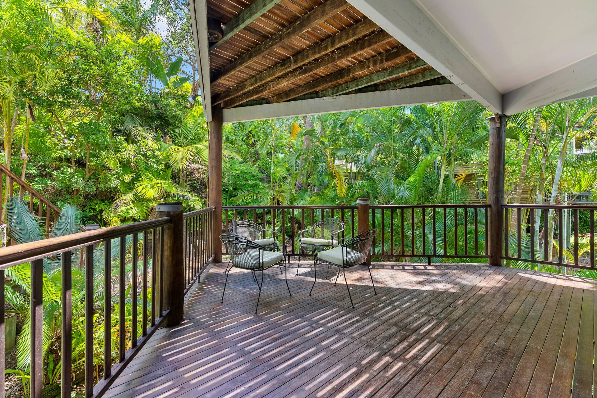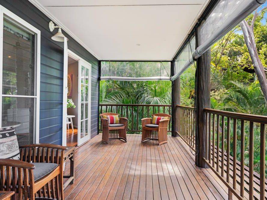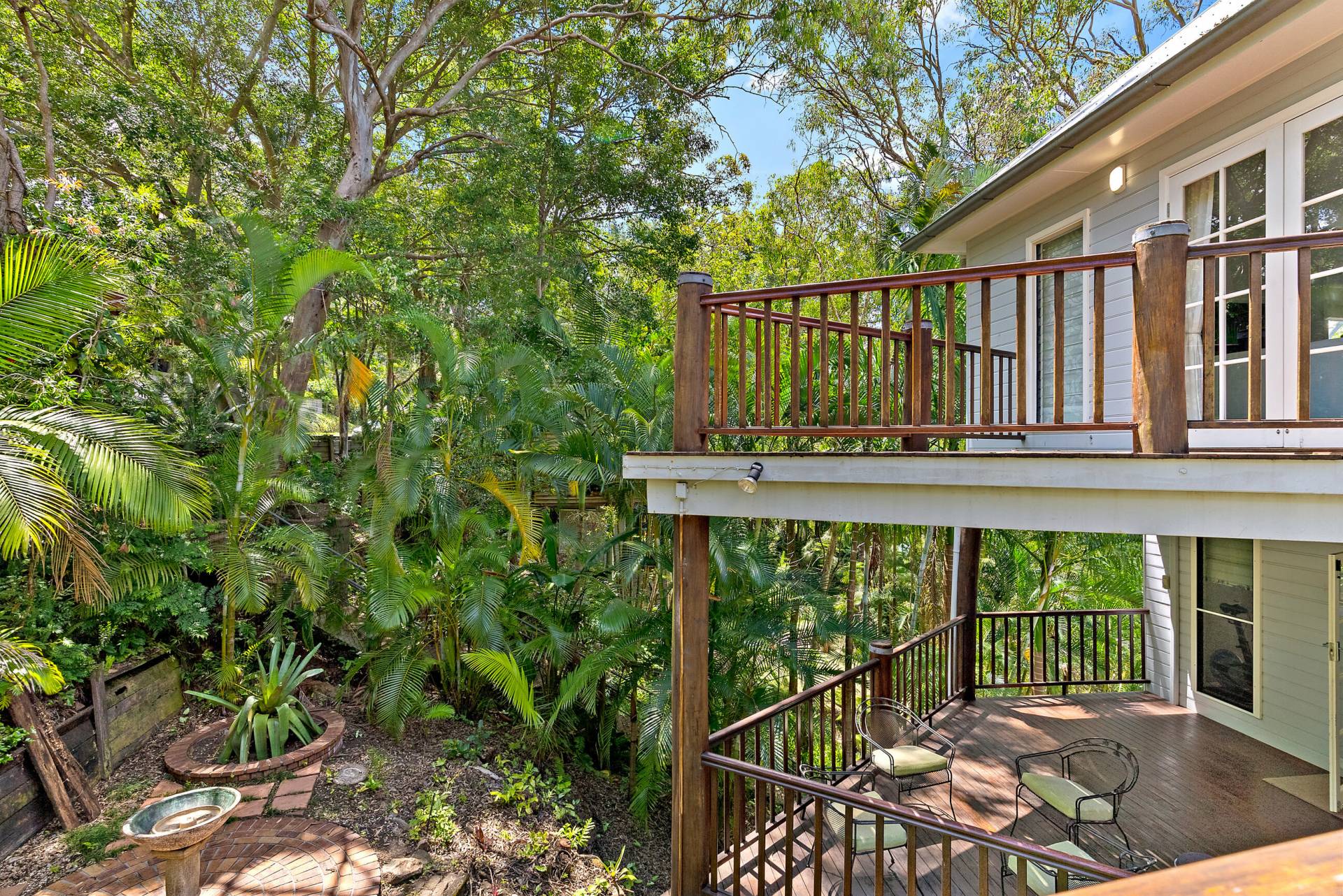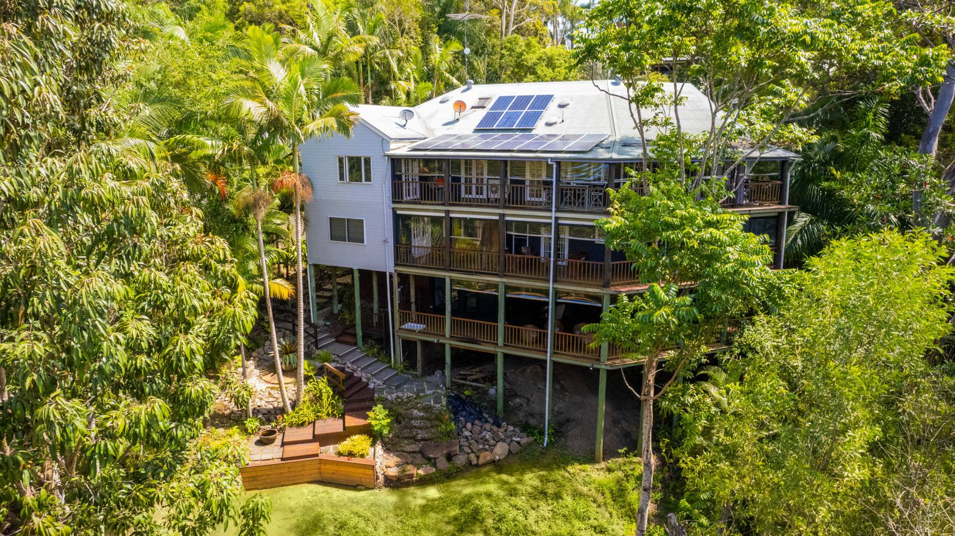What a stunner, you will love this refreshingly distinctive tri-level home set in 1240m2 of tropical grounds with an elevated coastal outlook. Elegantly delivering multiple light filled living zones, each with French doors opening to broad north facing timber decks, the home has a definite air of calm and relaxation. Ideal for a family requiring dual living, or a living and business solution, even Air BnB, with living spaces, bedrooms and bathrooms on each of the 3 levels, in addition to two full kitchens located on the first 2 levels of the home.