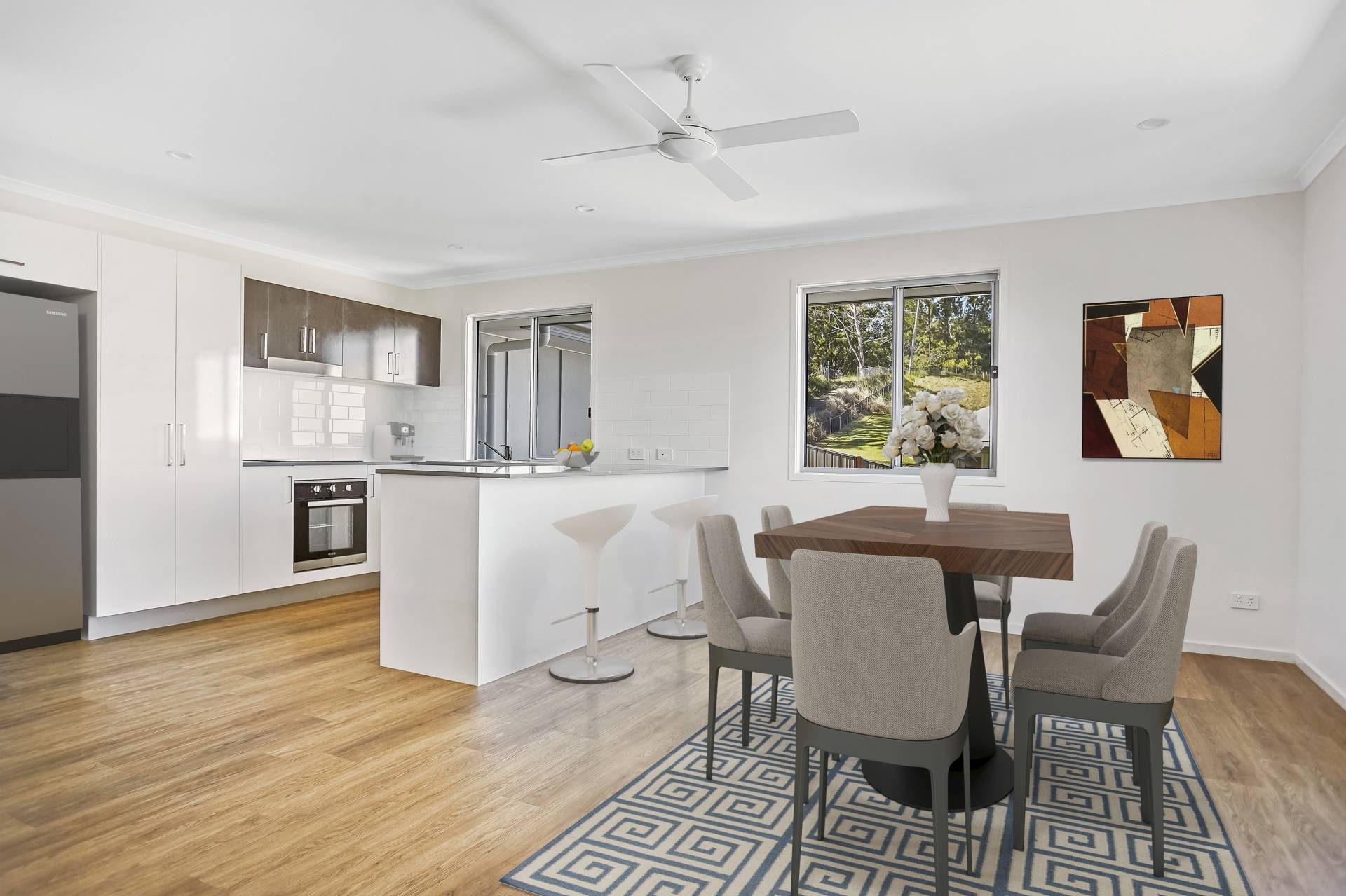 This freestanding home sits on a 1200 m2 principal parcel of land shared with one other home, technically a duplex but both homes are on separate titles, with their own parcels of land. With crisp white interiors, quality timber look vinyl plank flooring and stone benches the interior lends itself to any style of decor. Capturing plenty of natural light and breezes this is a very comfortable home, year ropund. There is a generous amount of yard plus both on-street and on site car spaces. Literally just metres from the local Primary School it's ideally suited to a family who love a cruisy lifestyle. There is plenty of room downstairs for a workshop and storing tools, projects or camping gear etc.