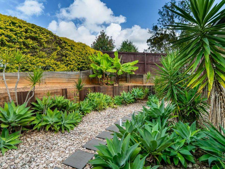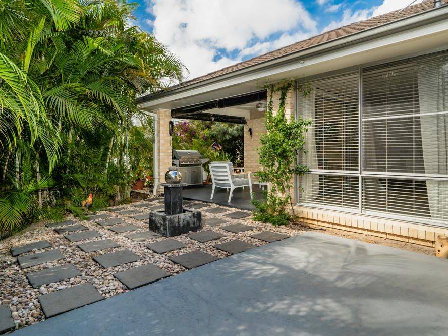 Starting with the wide formal entry and quietly separate sitting room, this home delivers a floor plan which flows with ease. Full length feature windows throughout, deliver a pretty garden outlook from every room providing abundant natural light. The warm neutral décor will suit every decorating style. Featuring large river rock and pavers framed by tropical greenery the yard makes the perfect stage for bromeliads, agave and succulents, the best of low care plant options, giving an appealing punch of colour and drama while drawing the eye from one point to the next.