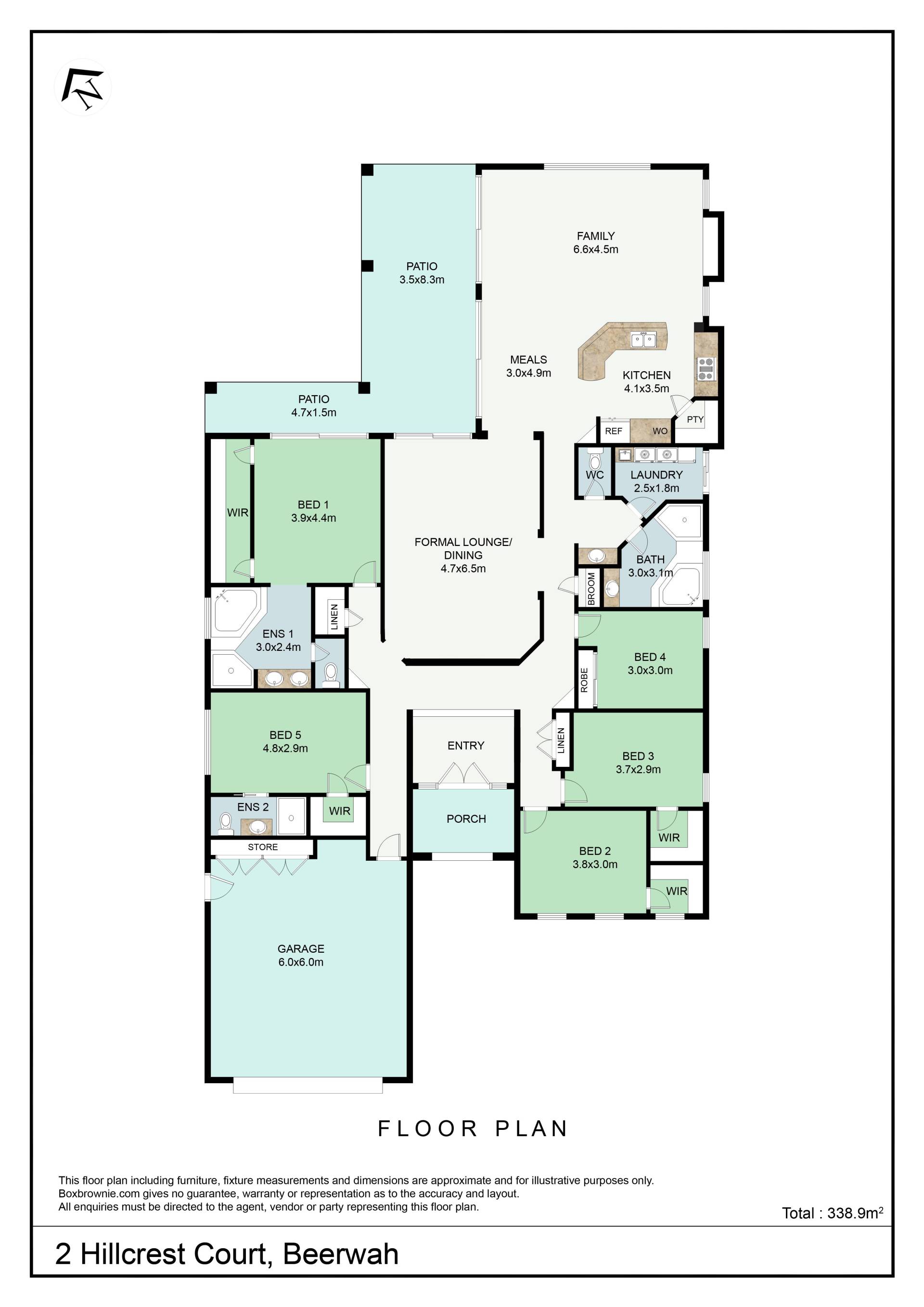 - Large covered entertaining area beside 80,000ltr solar heated pool