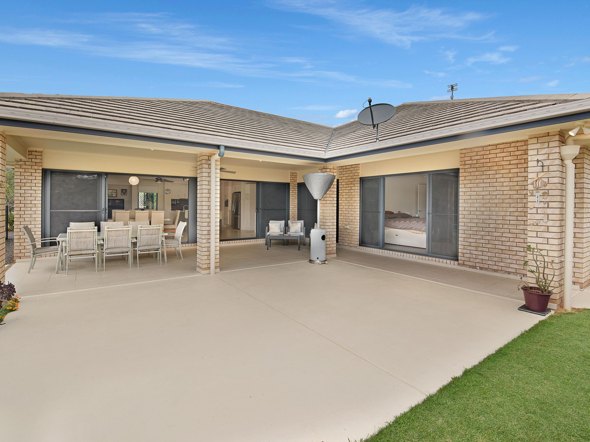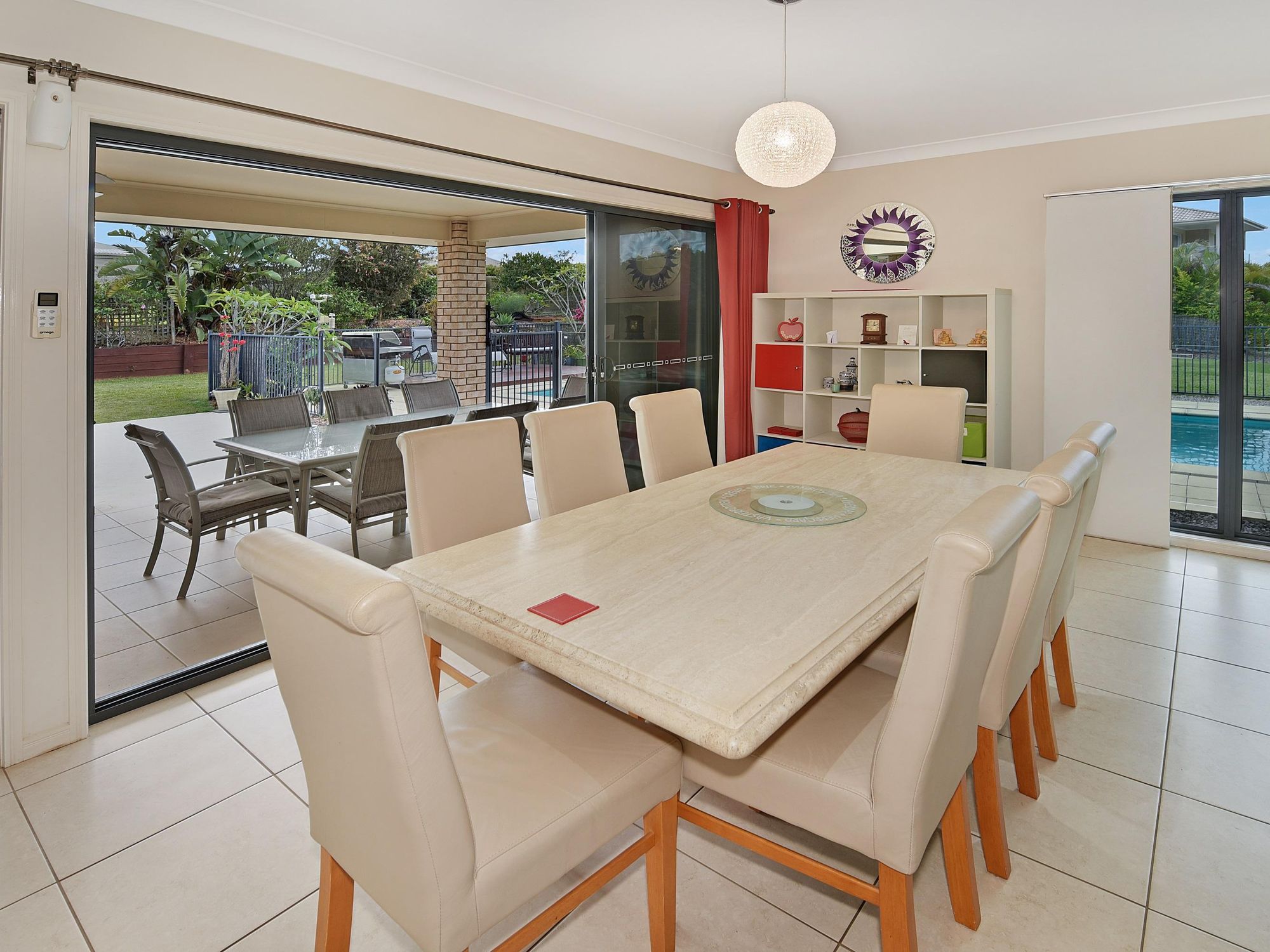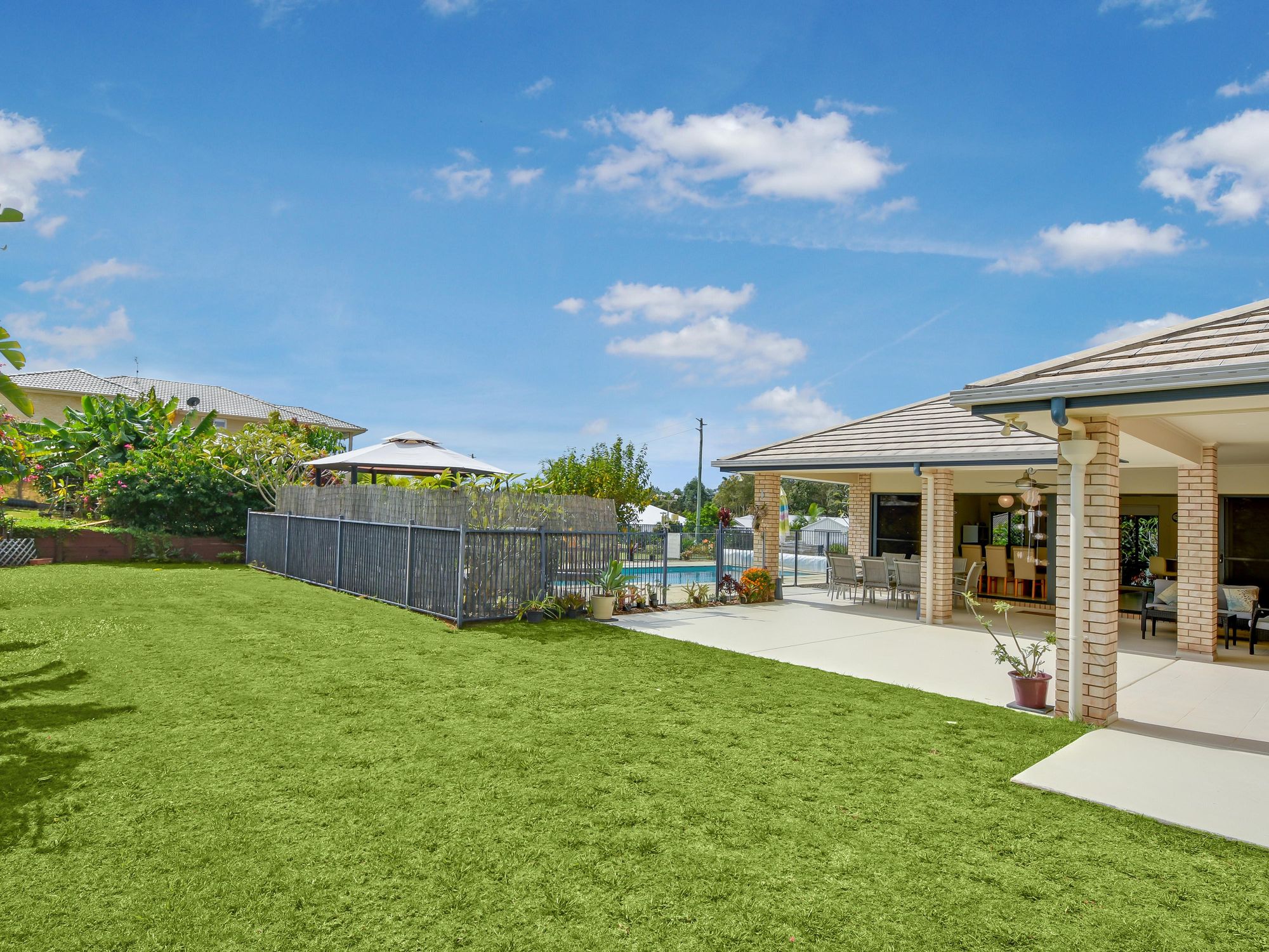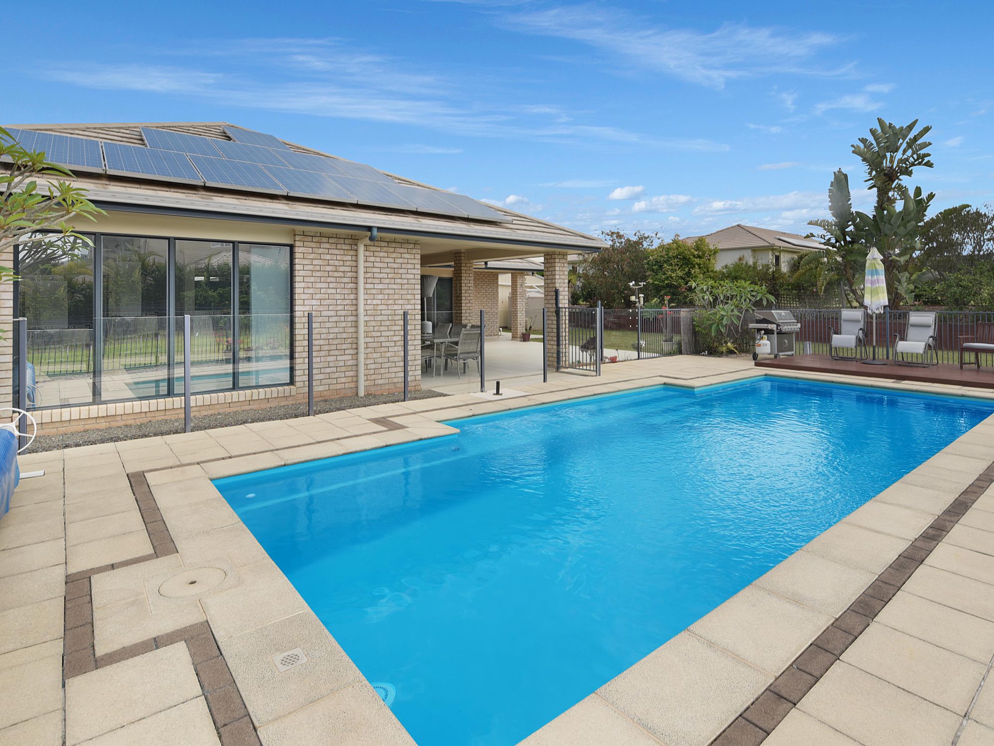 - Large covered entertaining area beside 80,000ltr solar heated pool