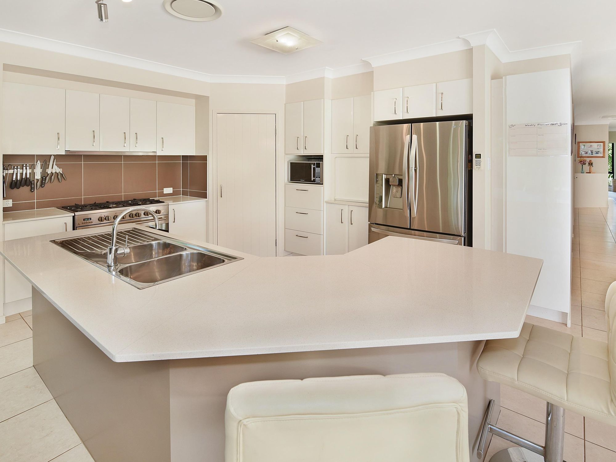 - Plumbed plus size fridge space, walk in pantry, breakfast bar