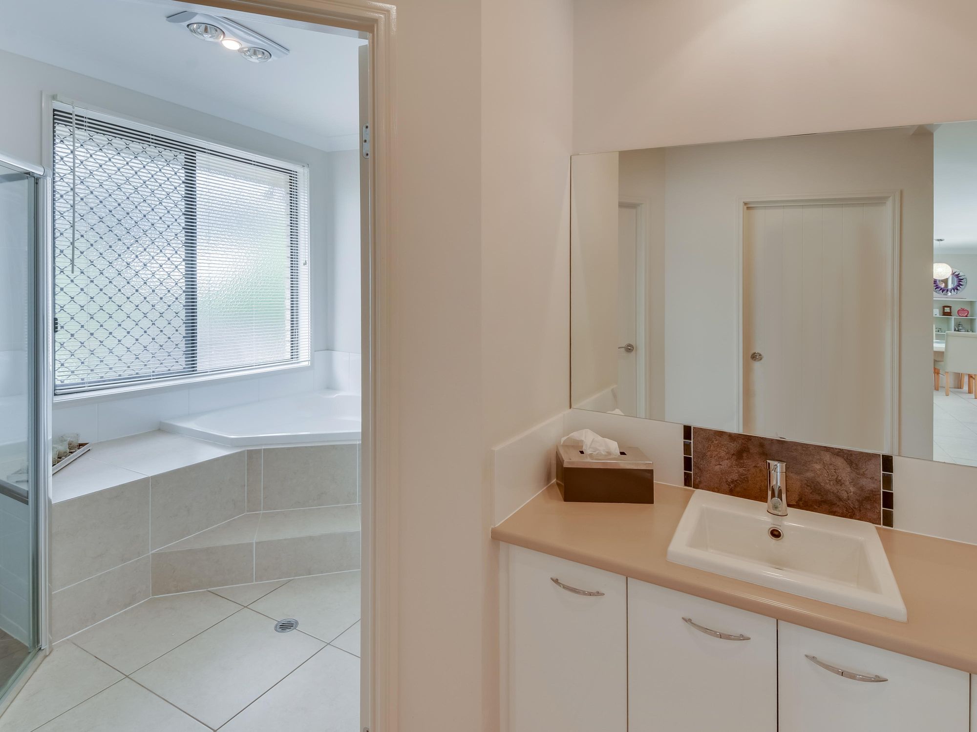 - Double vanity ensuite with podium mounted spa