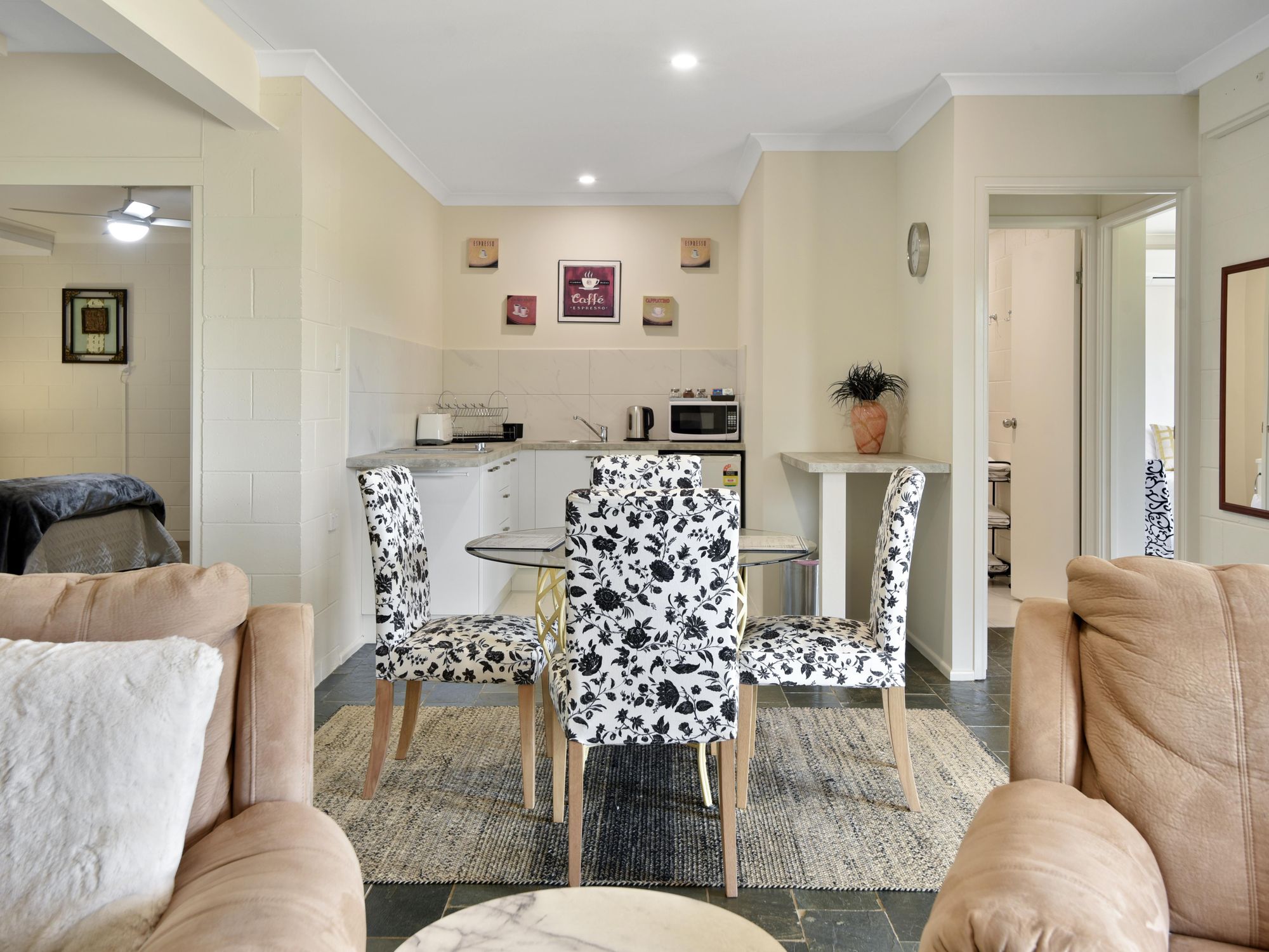 - Open plan living and dining room with kitchenette
