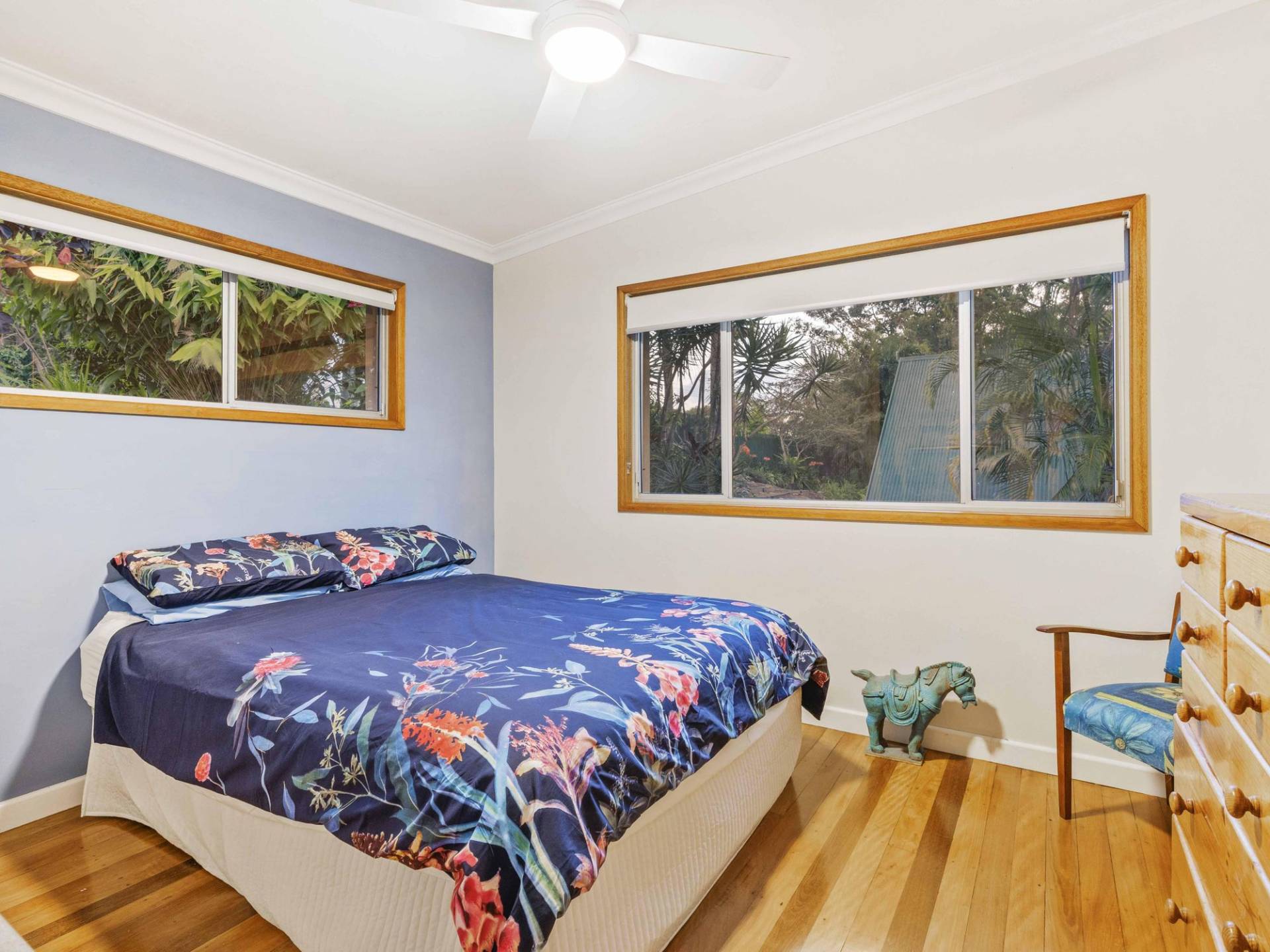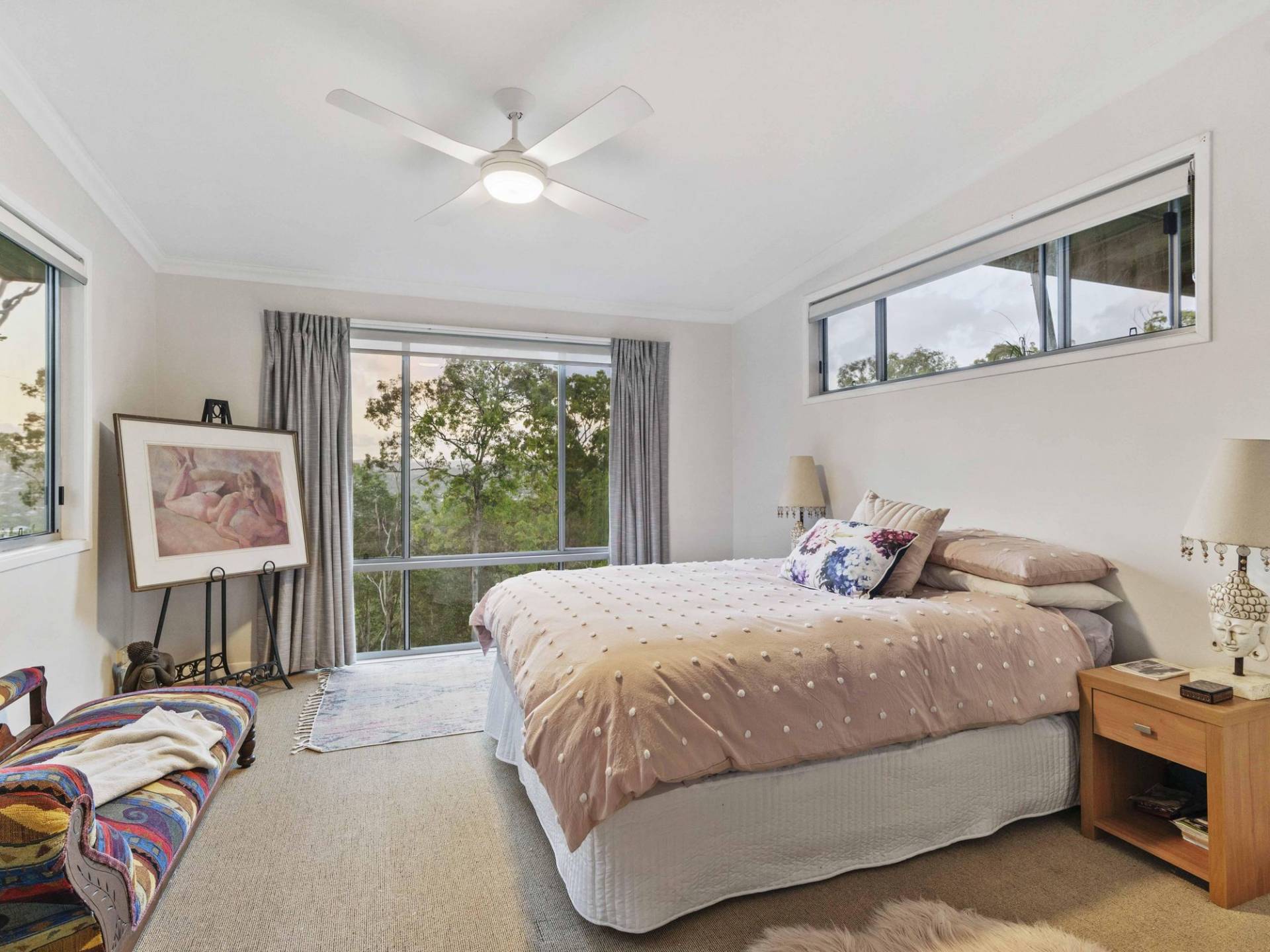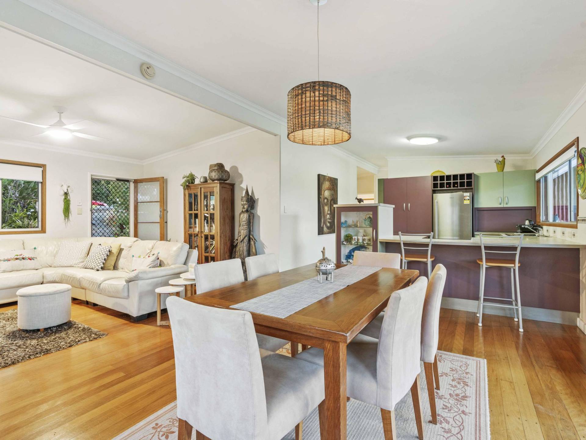 The sloping bush block has been mostly cleared with a range of ferns, bromeliads and palms providing a pretty outlook, there is a cleared space for veggies, maybe even following a permaculture model. It's just 4 minutes to the heart of Nambour with its shopping, train and bus depot, medical facilities, dining, cinemas and all the necessities, yet the house feels far away from the hustle and bustle.