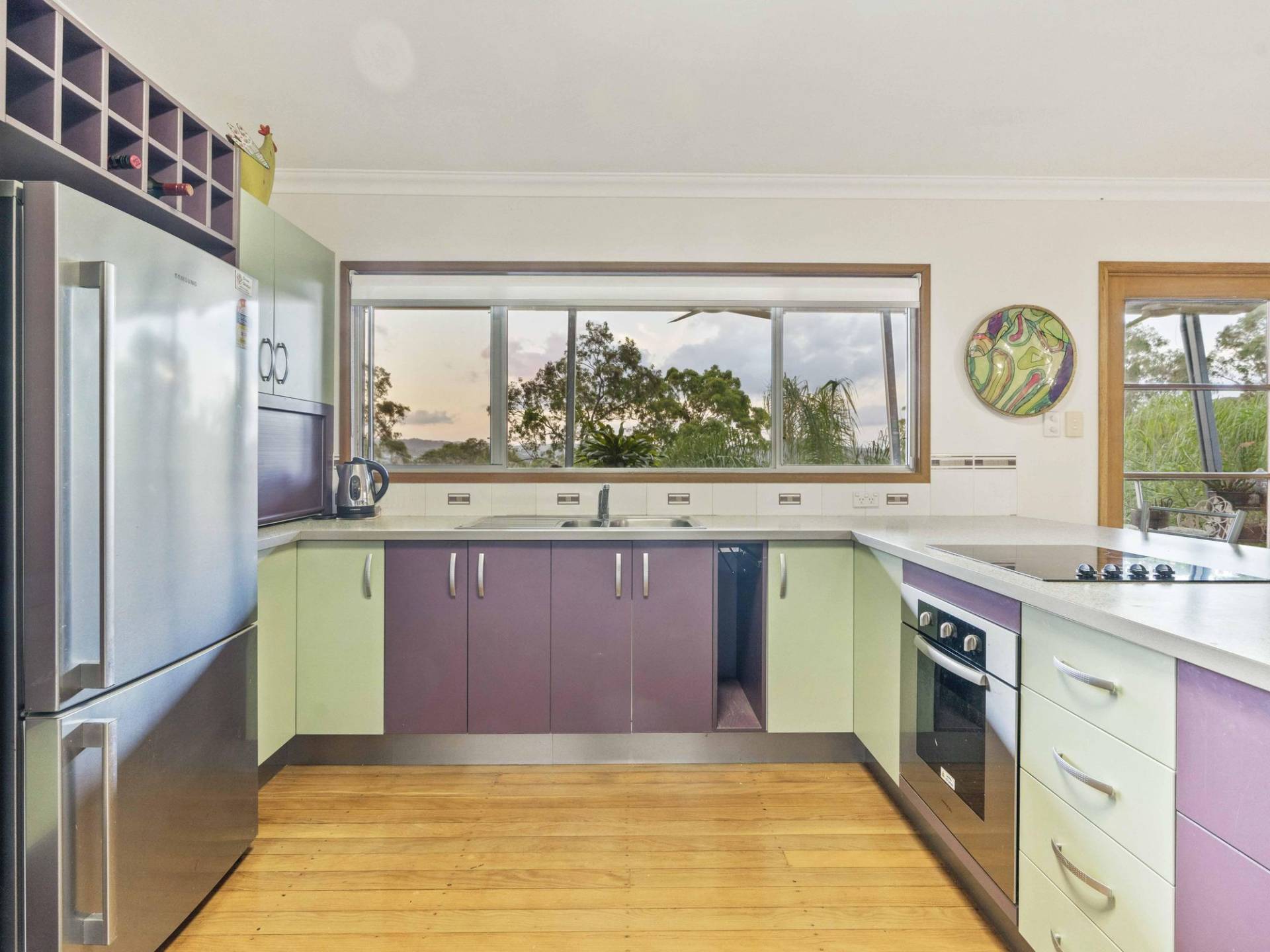 Panorama Drive says it all really! Sitting high above Nambour and looking towards Mapleton, this stylish home has some really pleasant design features. Split levels and different ceiling heights, the crisp white interior, polished timber floors, a super functional open plan with abundant natural light and airflow, all work together to create a relaxed and natural feel. The jewel in the crown however, is the huge North facing timber deck with its flyover roof and sweeping views across the rolling hills of Nambour.