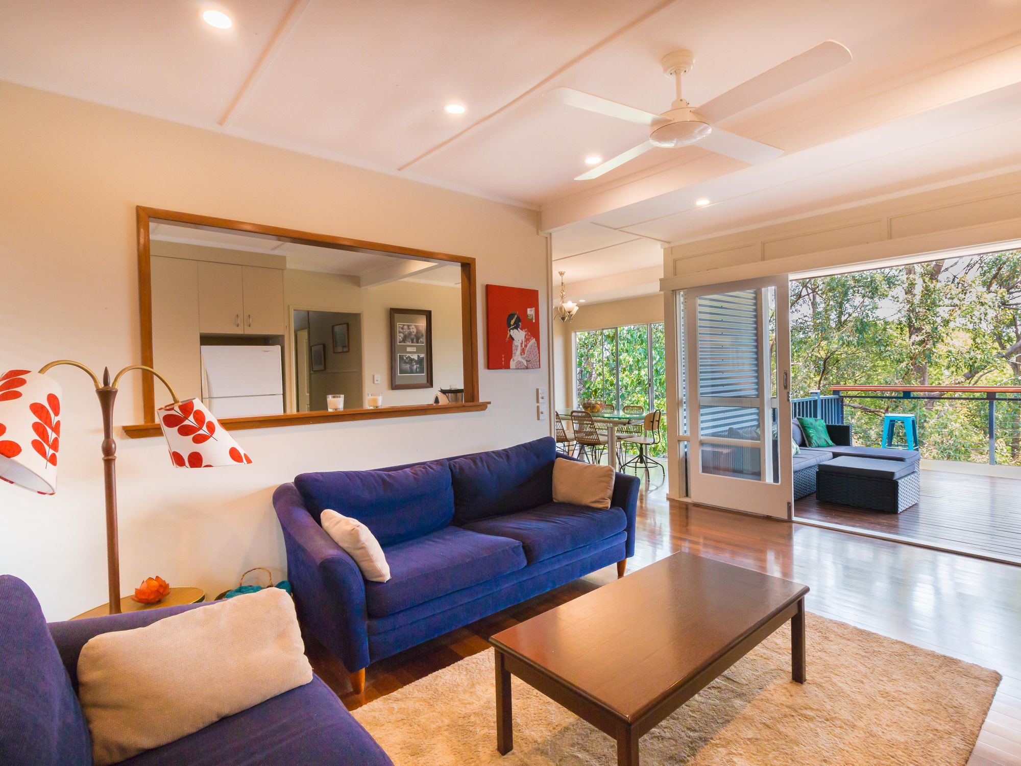 Offering uninterrupted views to the South across Perwillowen Valley and towards the ranges of the Hinterland, this charming family home set on 1.89 acres makes the most of the convenience of living in town whilst enjoying the space of the acreage lifestyle. Featuring polished timber floors, high ceilings, abundant natural light and breezes, a partially covered deck and multiple open plan living spaces, the home has a very relaxed and welcoming feel.