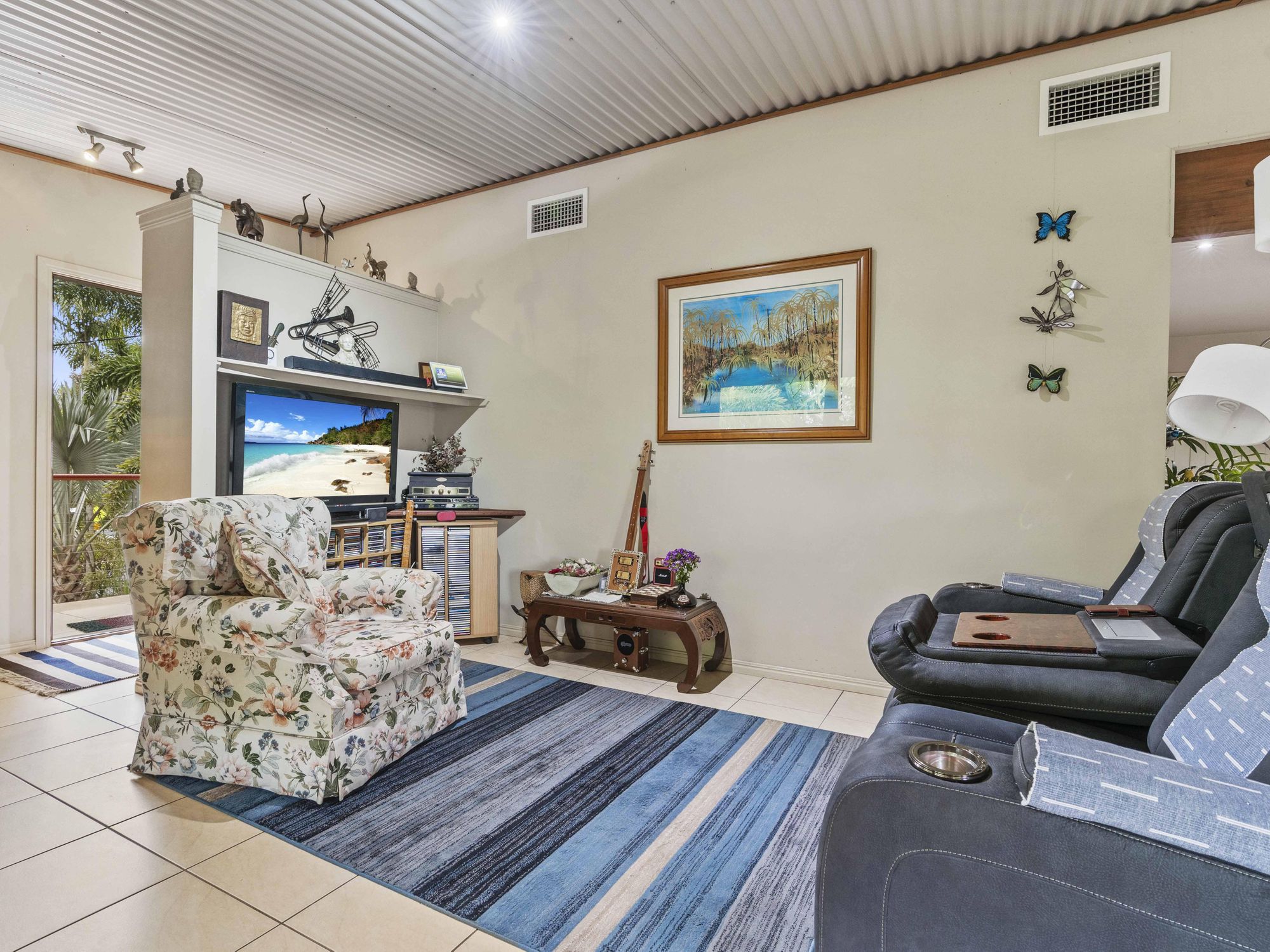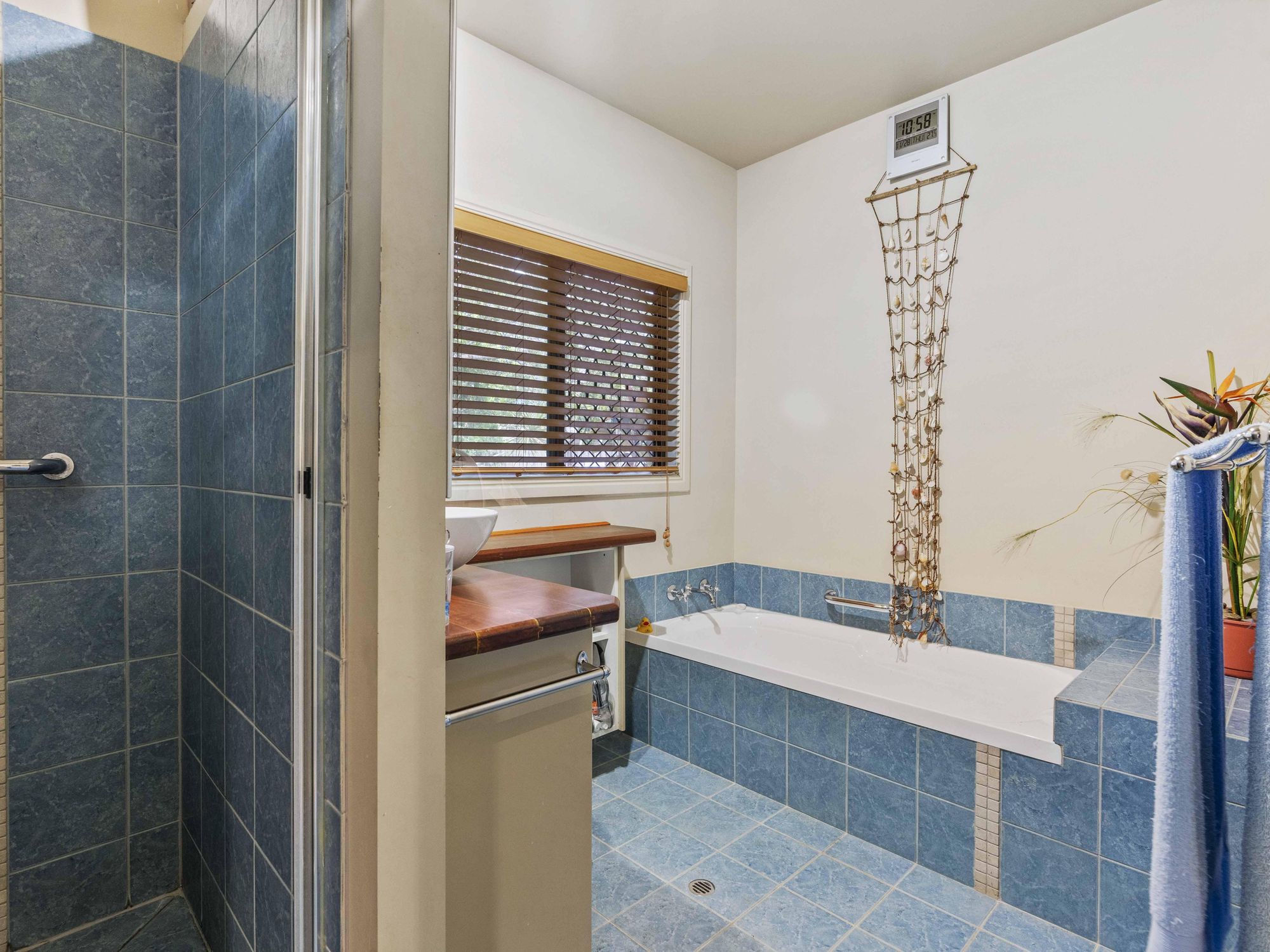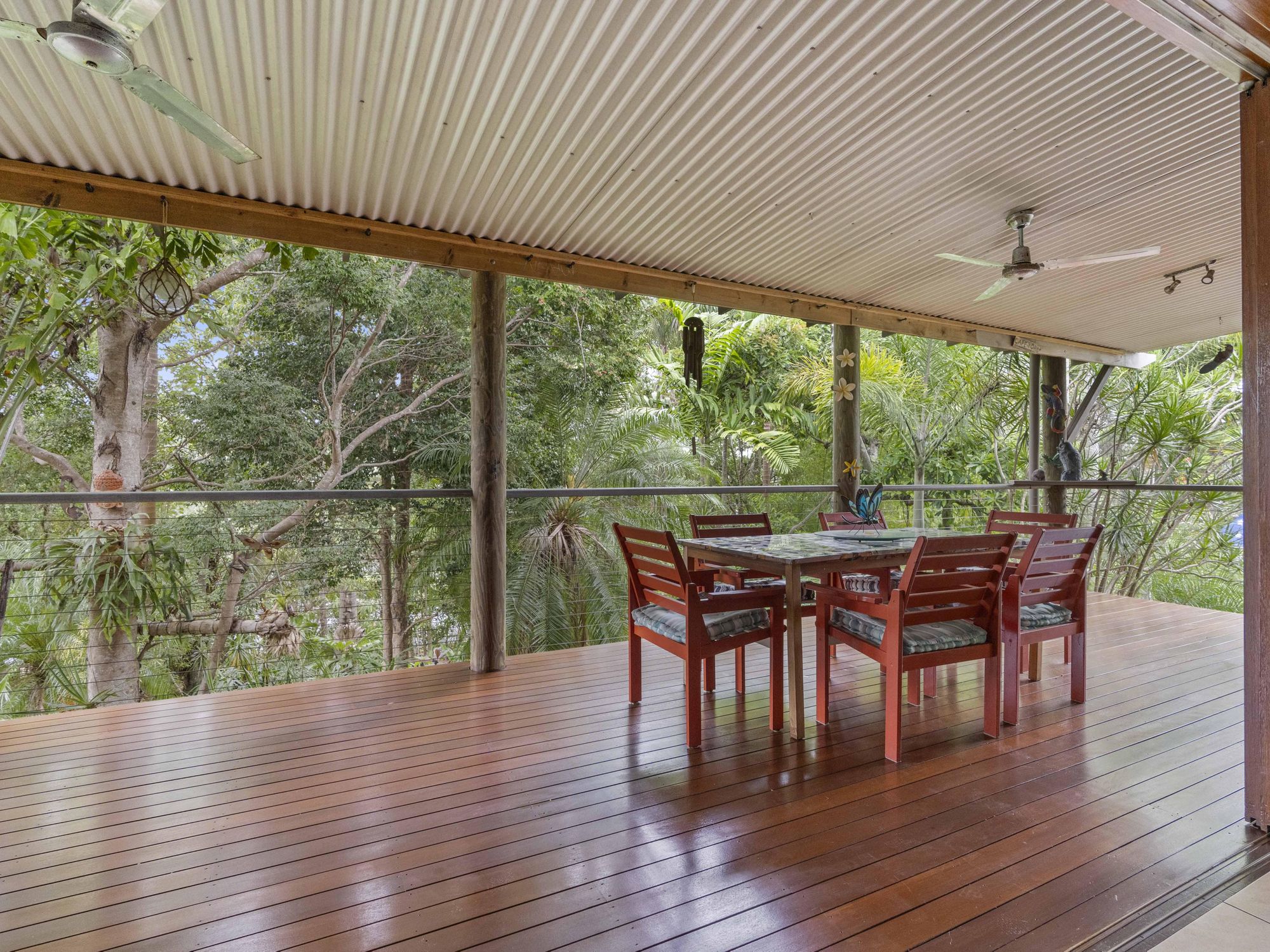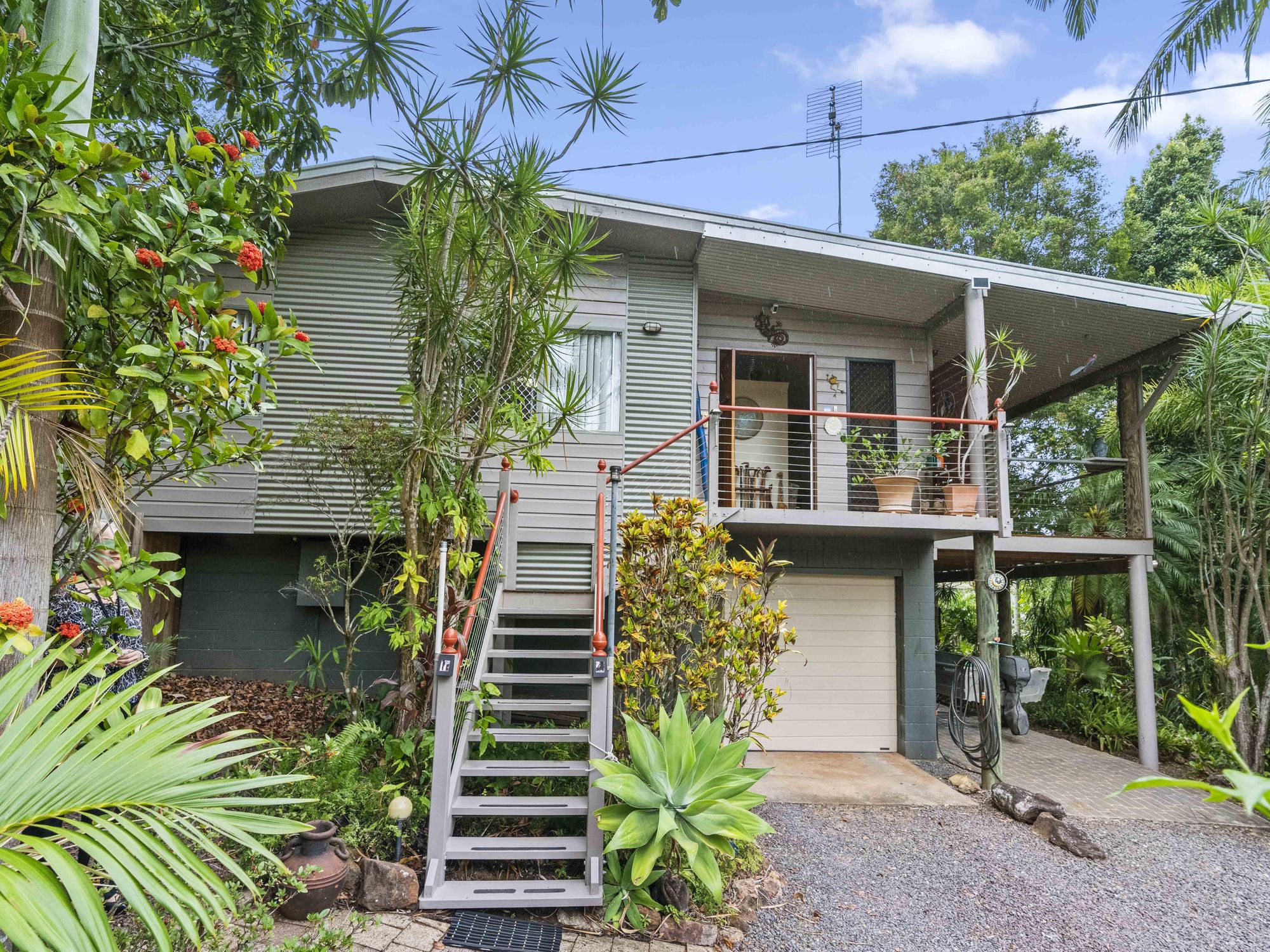 Talk about personality! The original cottage here used to house the local radio station, a full renovation including a huge covered entertaining deck completely transformed the house with the use of an eclectic mix of building materials featuring the use of Colorbond sheeting and natural timbers. Set back from the road for privacy, the owners have lovingly cultivated the large 1290m2 corner block turning it into a low maintenance and private pocket of rainforest with its own cool and peaceful micro climate.